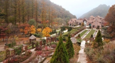 신사와 아가씨라는 드라마에 지현우 집이 바로 제이드가든에 있답니다. 그 외에도 사랑비와 그 겨울 바람이 분다 등 저명한 드라마의 촬영지이기도 한데 숲 속에서 만나는 작은 유럽이라고 부르는 테마로 꾸민 이국적인 수목원으로 약 16만 3500㎡ 부지에 자연 지형을 할 수 있는 원형대로 유지한 채로 24개의 테마 정원을 조성했답니다.