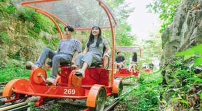 강촌 레일파크는 70년을 달린 경춘선 열차가 멈춘 선로를 달리는 레일바이크 입니다. 총 3구역으로 나뉠 수 있으며 김유정역, 경강역, 가평역에서 탑승하시면 되어요. 김유정 레일바이크의 경우에는 김유정역에서 출발하며 중간지점까지 레일바이크 탑승 후 중간에서 낭만열차로 갈아탑니다.