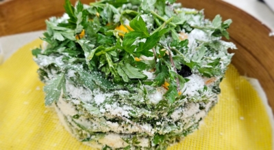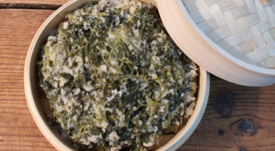 2) 찜기에 쑥 버무린 것을 담아줘요. 대나무 찜기를 활용하려면 면보는 적셔서 활용해야 쑥버무리가 달라붙지 않고 잘 떨어져요. 찜기에 쑥버무린 것을 듬뿍 올려주는데 소복하게 담아도 김이 올라오기 시작하면 푹 가라앉으니 무방합니다.