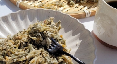 15~17분 정도 쪄서 쑥버무리가 잘 익었으면 쑥버무리를 접시에 펼쳐서 담아주며 면보를 떼 내줘요. 그래야 수분감없이 포슬포슬하게 유지한 상태로 섭취할 수 있답니다. 접시에 고루 잘 펼쳐서 담아주며 식혀주면 쑥버무리 만드는법 완성입니다.