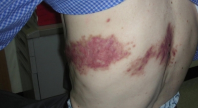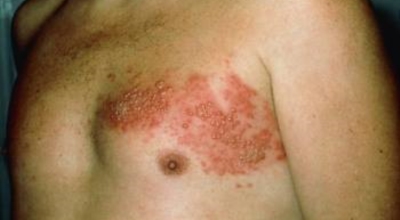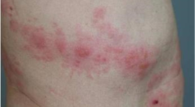 피부발진은 대상포진의 대표적인 증상 중 한 종류이죠. 바이러스가 침투한 감각 신경 분포를 따라 줄무늬가 생기는 것이 특징이며 초기에는 몸 일부에 발진과 물집이 생기다가 3~4일 후에 물집이 고름으로 변하면서 1주일에서 10일 사이에 딱지가 생깁니다.